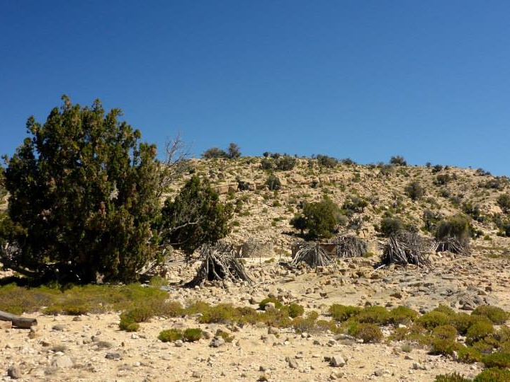 Next morning we reached the village in twenty minutes. Few neat houses built on a cliff overlooking Nadan. I didn’t have binocs else we could spot Abdullah from here. We were very unlucky yesterday for not reaching here. But this happens on all remote unmarked trails. It is a gamble between losing a nice campsite which is in front of you and finding an amazing campsite which you don’t know how far it is. We spent time to explore around and then moved on. We had a long day ahead of us. We had to walk 20 km if we wanted to reach Muscat today. Hereon the progress was quick as we could see the trail and terrain was level. We reached the khawr before lunch time. It was a large flat area with deep soil unlike other parts of the plateau that were stony. There were big Juniper trees dotting this depression. It was not actually a wetland but could turn into one if it rains. The soil was caked with few wet patches where there was moisture from last rains. The highest peak of Jebel Khawr 2700m was on our right, about 2 km of moderate ascent. We decided to skip it because of lack of time. Someday I would like to go over the peak to the other side and look at Jebel Misht from there.