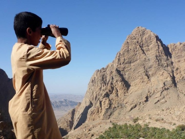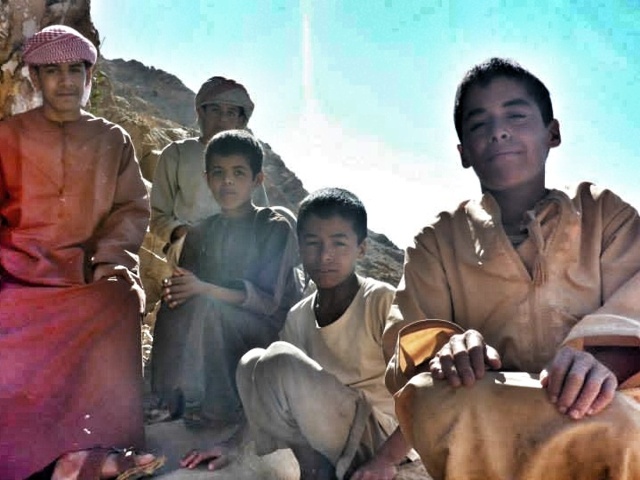 We met a party of kids who started following us. When I was inspecting the cliffs with my binocs, one of the kids walked up to me and asked to see them. His name was Abdullah. He was suffering from a skin disease which made his skin very dry and rough. Later we got to know that he even went to Thailand for treatment but it didn’t help. His nose dripped continuously and he wiped it with his sleeve. I handed my binocs to him. Abdullah was all ecstatic seeing through it. And he didn’t want to return it. Then it occurred to me and I asked him in my 123 Arabic “take us to the top of the mountain and you can keep it”. He agreed, but first he invited us for coffee.