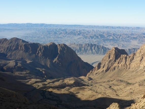 By midday we reached a point from where the ridge didn’t look far. Here the path clung to the side of the mountain. A deep wadi ran to our right. Abdullah told us to follow the wadi and after some distance cross it to the other side while continuing climbing. He said there was no chance to get lost. All the kids asked us if we had food enough for the journey. We offered them water but they refused. They were bedu and even at this young age they knew that we would need it much more then them over the next two days. Then the kids returned. We found our way to the top only after 2 hours. We literally came out of a hole covered with bushes on to a flat area which was the eastern ridge of Jebel Khawr. We were happy to walk on level surface. Hereon we had to follow north westerly direction staying on this ridge until we reached the khawr, wetland.